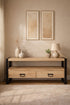 The TV Meubel Rio is a TV table crafted from mango wood in a natural finish, featuring 2 spacious drawers for organised storage. With its flat and smooth surface, this functional piece combines timeless design with everyday practicality, making it a stylish addition to any urban industrial space.