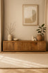 TV Meubel Hugo 160 is een TV-meubel vervaardigd uit mangohout met een zwarte afwerking en een karakteristiek zandgeblazen oppervlak. De verfijnde textuur benadrukt het authentieke karakter van het hout. Met drie ruime deuren biedt dit meubel praktische opbergruimte voor al je essentials.
