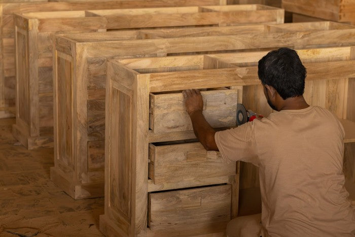 We bring the rich tradition of Indian woodworking to Europe by crafting sustainable mango wood furniture that’s built to last. Our mango wood is responsibly harvested only after the trees stop bearing fruit, and each piece is handcrafted by artisans with deep knowledge and care. Our pieces are designed to feel lived-in and loved: a sideboard with character, a coffee table you gather around, a chopping board that’s passed down. Always natural. Always thoughtful. At Huis Van Mango, we value quality over quantity, slow production, and designs that make your home feel authentic, warm, and connected to something greater.